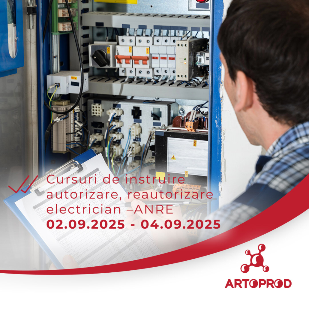 ARTOPROD SRL organizeaza in perioada 02.09.2025-04.09.2025, cursuri de instruire in vederea autorizarii/reautorizarii electrician –ANRE