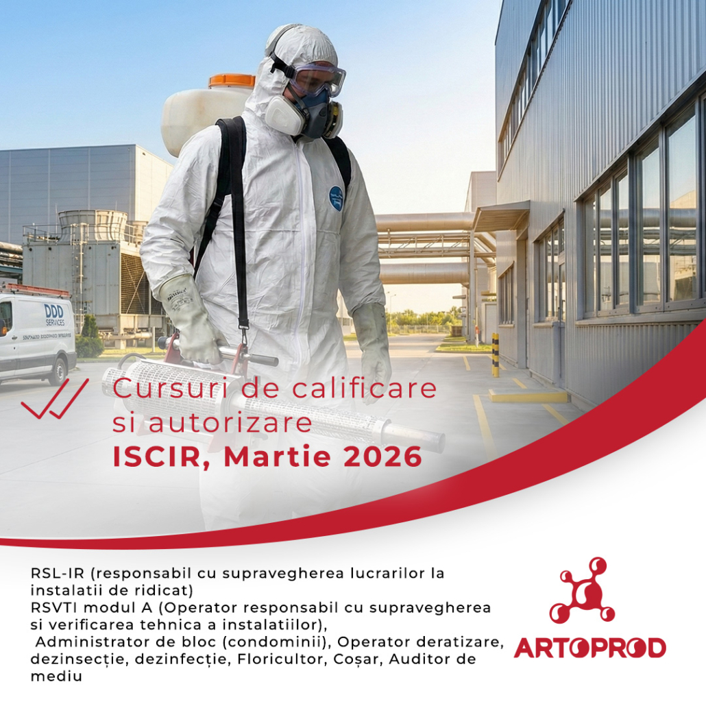 ARTOPROD organizeaza in perioada urmatoare cursuri de calificare si autorizare ISCIR pentru urmatoarele meserii – Martie 2026